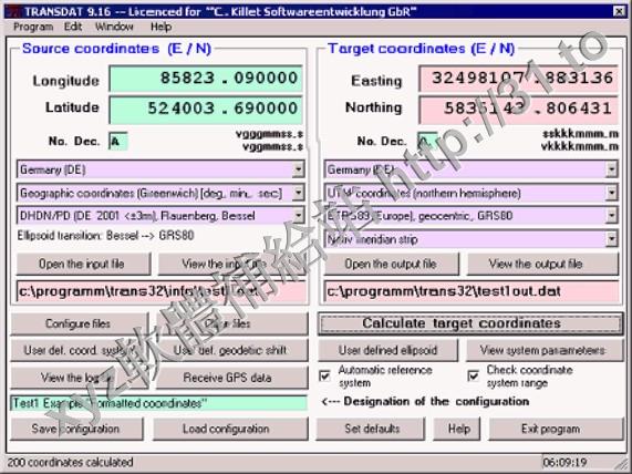 TRANSDAT Geosoftware executes coordinate transformations
